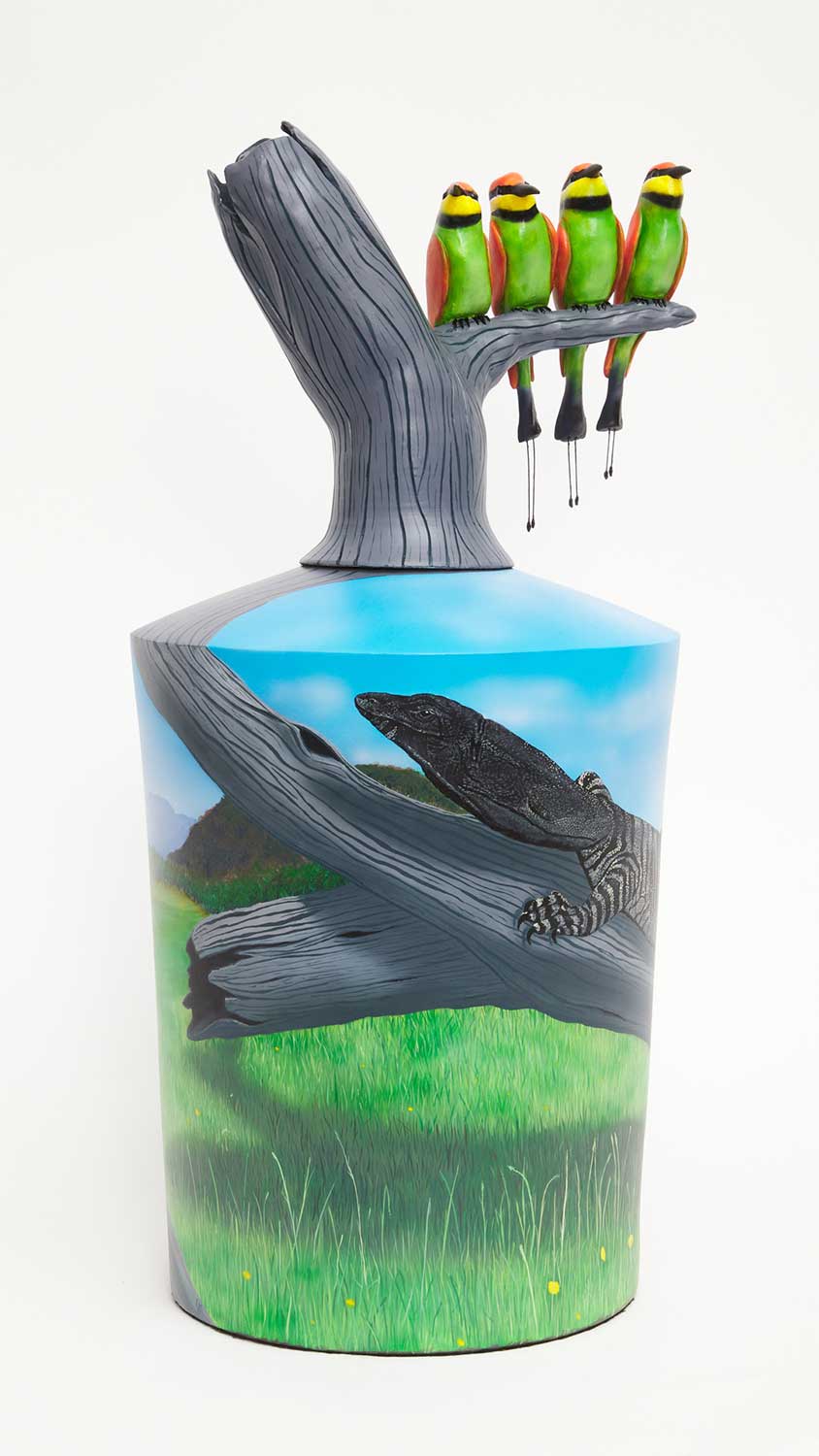 Standing at 1.14 metres high with an internal led light that flickers to give it its flame like glimmer. This artwork was Sean's KHT Blak Design Artwork. How Waan turned Black was purchased by the National Gallery of Australia for their collection.